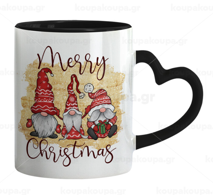 Xmas Elves, Mug heart black handle, ceramic, 330ml