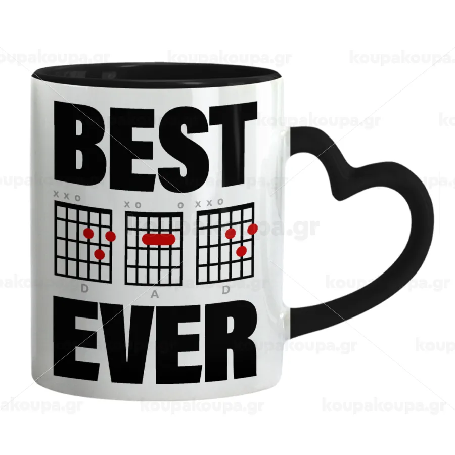 Best DAD Ever guitar chords, Mug heart black handle, ceramic, 330ml