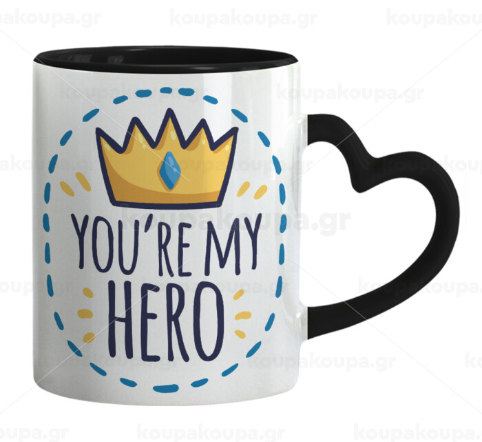 Dad, you are my hero!, Mug heart black handle, ceramic, 330ml