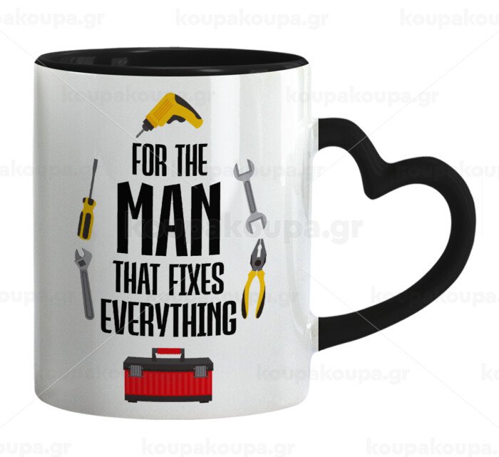 For the man that fixes everything!, Mug heart black handle, ceramic, 330ml