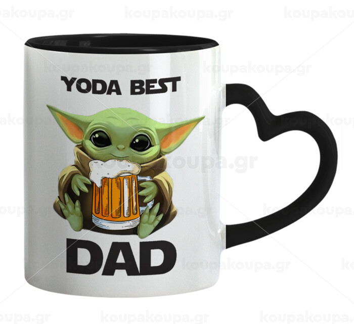 Yoda Best Dad, Mug heart black handle, ceramic, 330ml