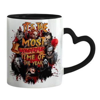 Halloween it's most wonderful time of the year, Mug heart black handle, ceramic, 330ml