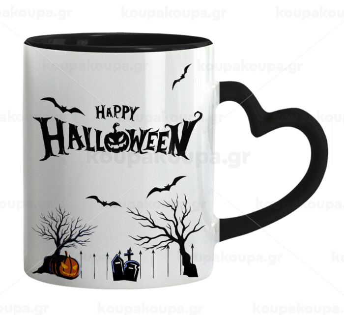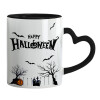 Happy Halloween cemetery, Mug heart black handle, ceramic, 330ml