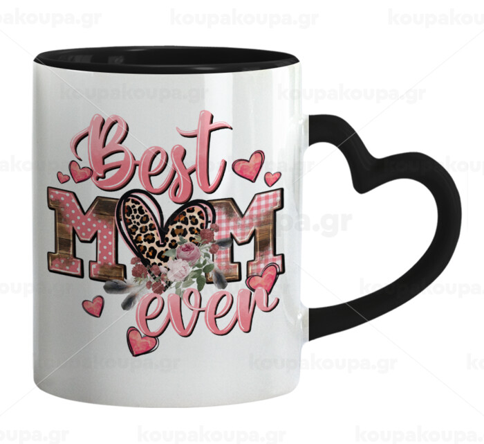 Best mom ever Mother's Day, Mug heart black handle, ceramic, 330ml
