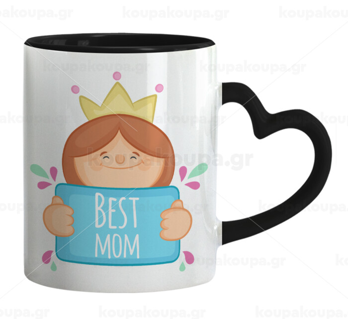 Best mom Princess, Mug heart black handle, ceramic, 330ml