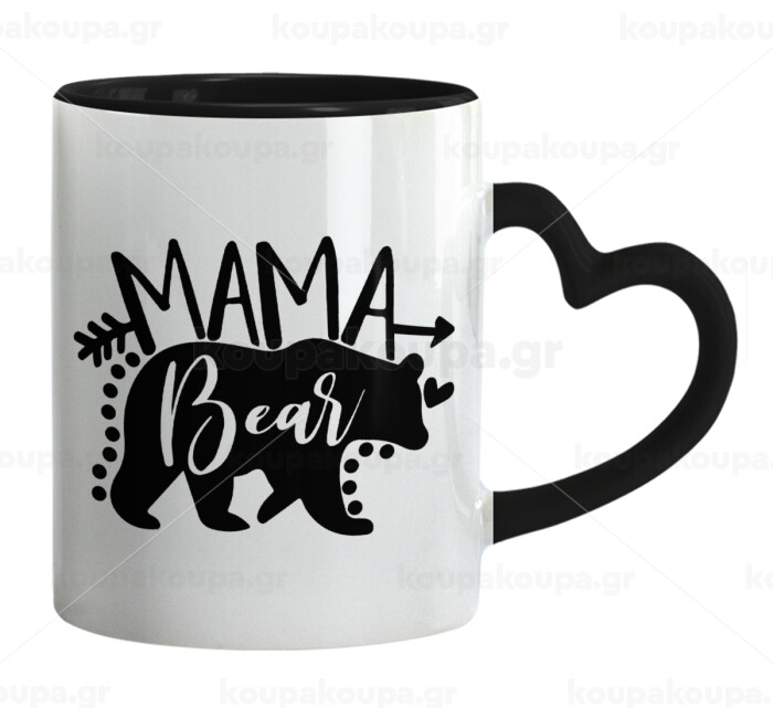 Mama Bear, Mug heart black handle, ceramic, 330ml