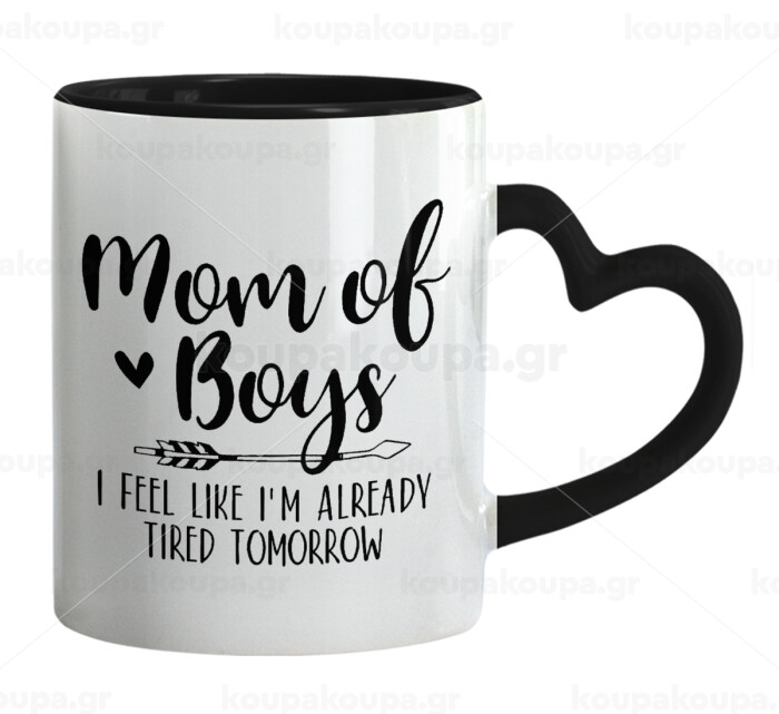 Mom of boys i feel like im already tired tomorrow, Mug heart black handle, ceramic, 330ml