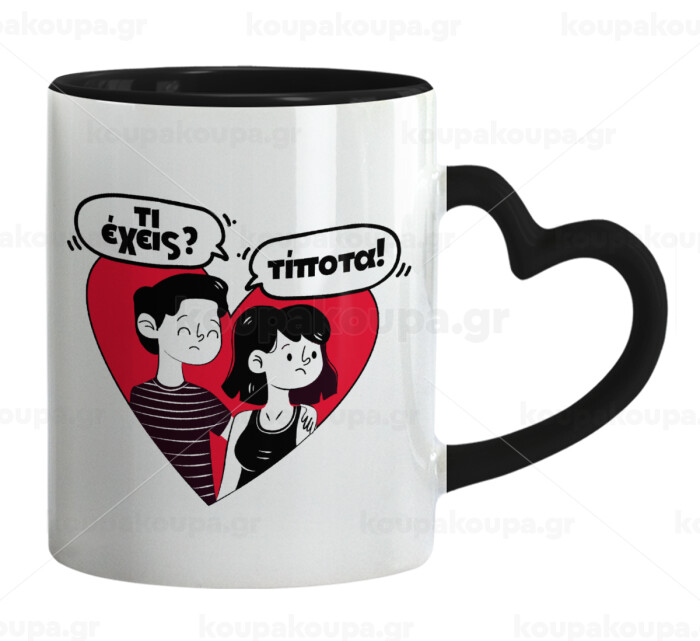 Τι έχεις? Τίποτα!, Mug heart black handle, ceramic, 330ml