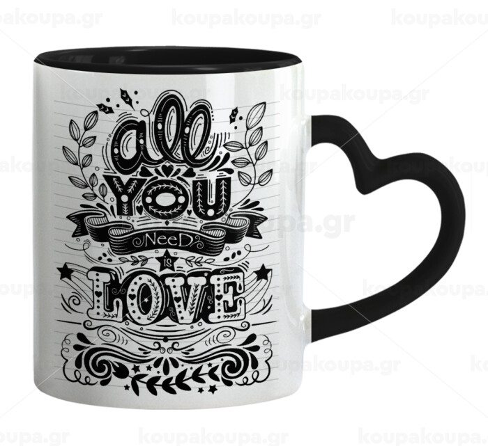 All you need is love, Mug heart black handle, ceramic, 330ml