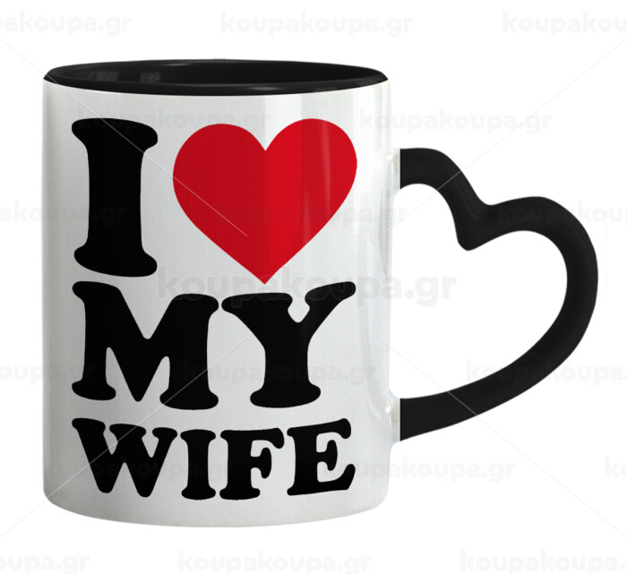 I Love my Wife, Mug heart black handle, ceramic, 330ml