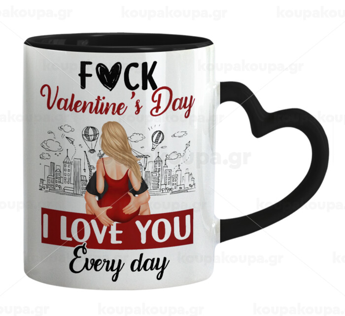 I love You Everyday , Mug heart black handle, ceramic, 330ml