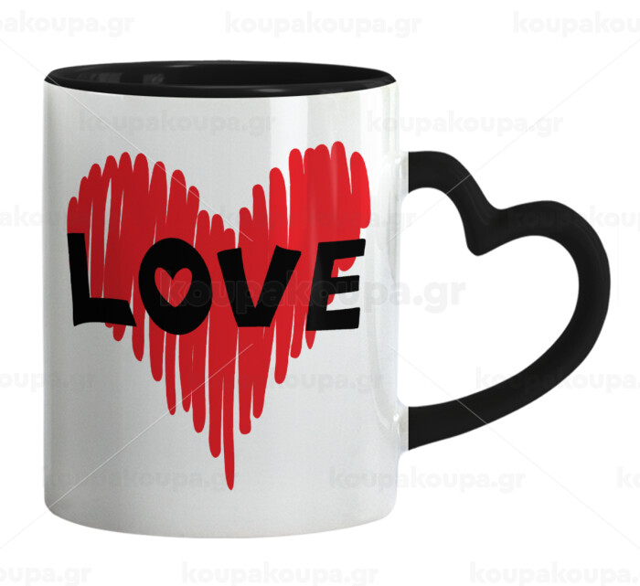 I Love You red heart, Mug heart black handle, ceramic, 330ml