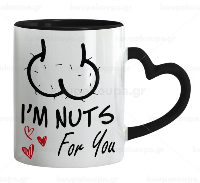 I'm Nuts for you, Mug heart black handle, ceramic, 330ml