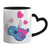 Lilo & Stitch hugs and hearts, Mug heart black handle, ceramic, 330ml