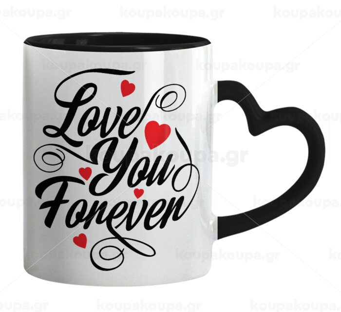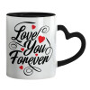 Love you forever, Mug heart black handle, ceramic, 330ml