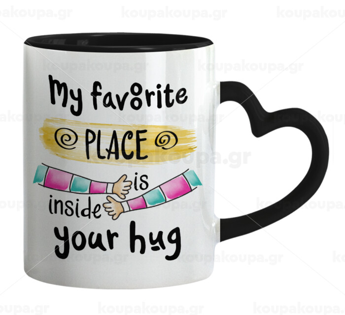 My favorite place is inside your HUG, Mug heart black handle, ceramic, 330ml