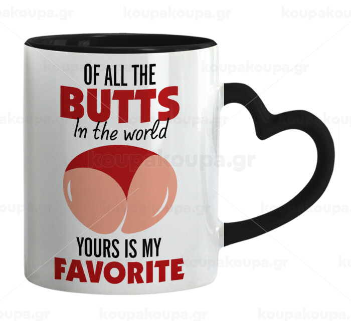 Of all the Butts in the world, your's is my favorite, Mug heart black handle, ceramic, 330ml