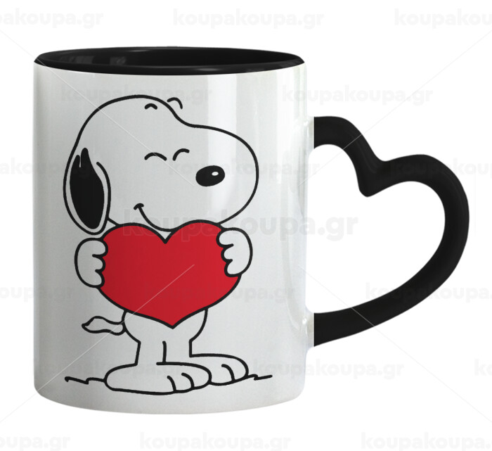 Snoopy takemy heart, Mug heart black handle, ceramic, 330ml