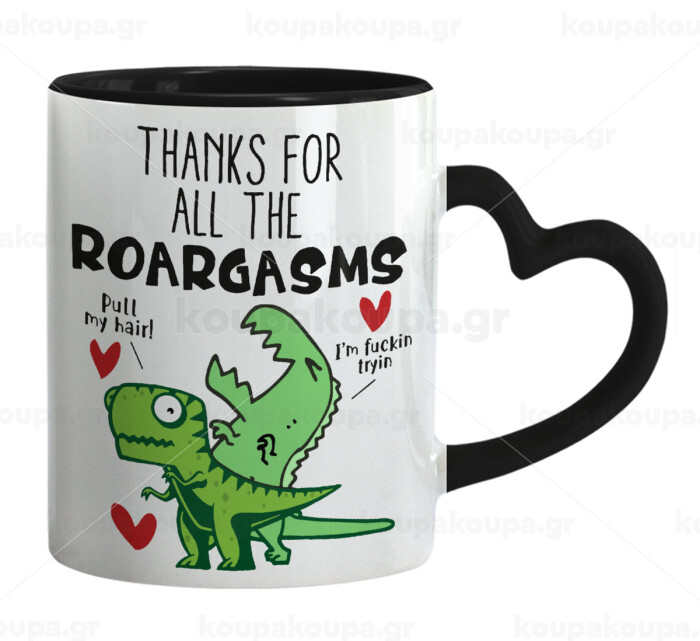 Thanks for all the ROARGASMS, Mug heart black handle, ceramic, 330ml