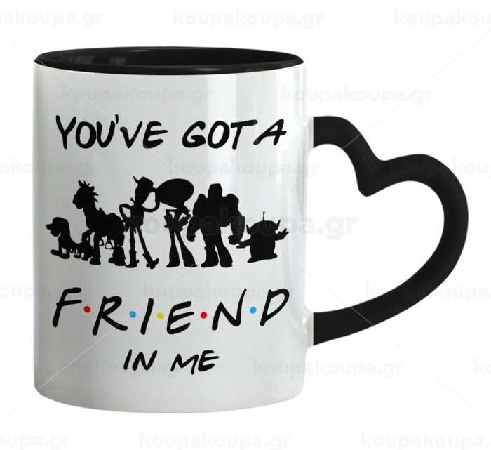 You've Got a Friend in Me, Mug heart black handle, ceramic, 330ml