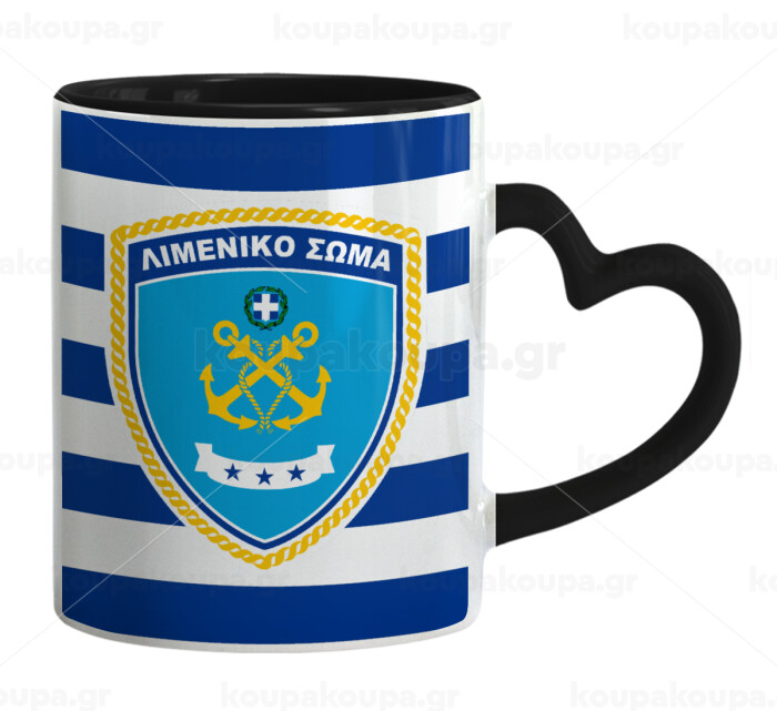 Hellenic coast guard, Mug heart black handle, ceramic, 330ml