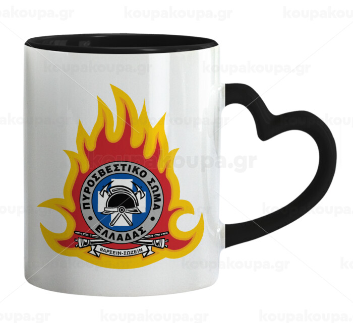 Πυροσβεστικό σώμα Ελλάδος σκούρο, Mug heart black handle, ceramic, 330ml