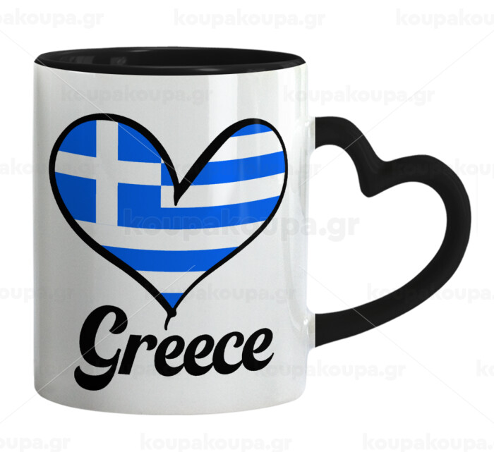 Greece flag, Mug heart black handle, ceramic, 330ml