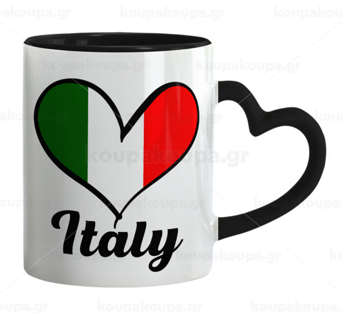 Italy flag, Mug heart black handle, ceramic, 330ml