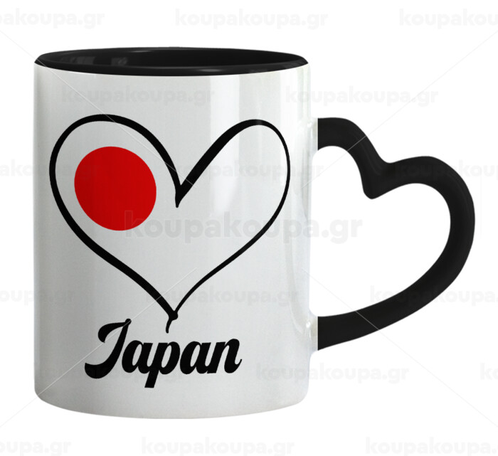 Japan flag, Mug heart black handle, ceramic, 330ml
