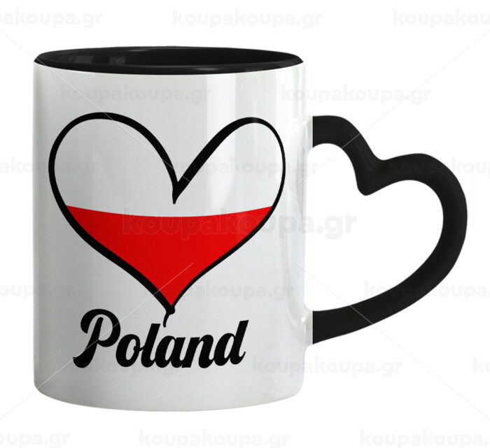 Poland flag, Mug heart black handle, ceramic, 330ml