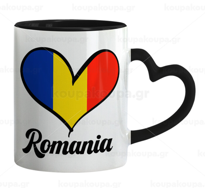 Romania flag, Mug heart black handle, ceramic, 330ml