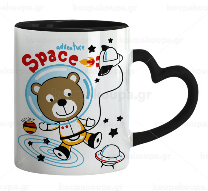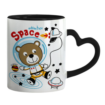 Kids Space, Mug heart black handle, ceramic, 330ml