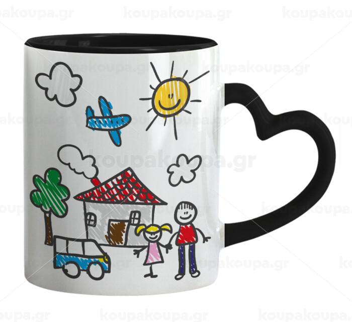 Children's drawing, Mug heart black handle, ceramic, 330ml