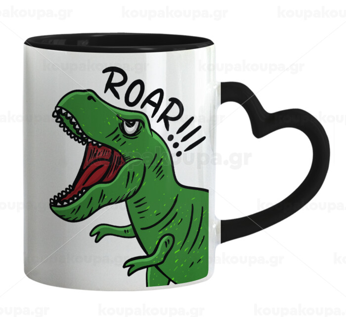 Dyno roar!!!, Mug heart black handle, ceramic, 330ml