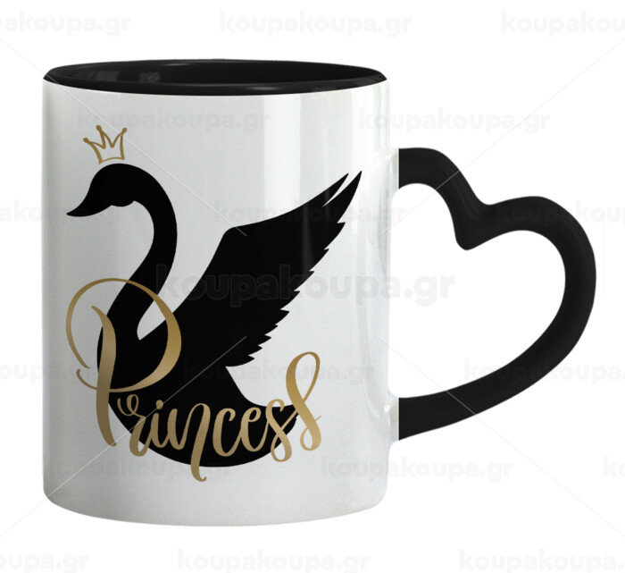 Swan Princess, Mug heart black handle, ceramic, 330ml