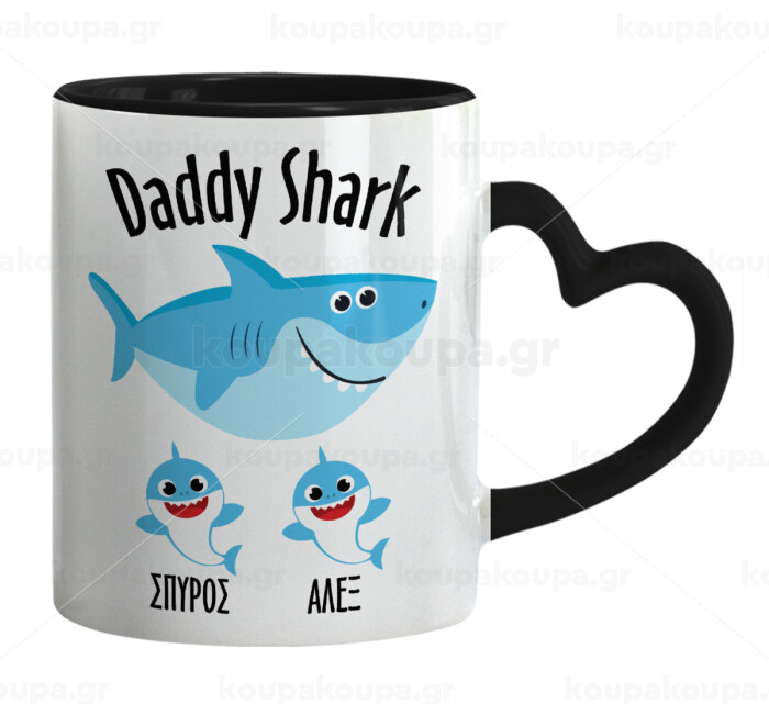 Daddy Shark (με ονόματα παιδικά), Mug heart black handle, ceramic, 330ml