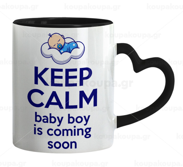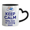 KEEP CALM baby boy is coming soon!!!, Mug heart black handle, ceramic, 330ml