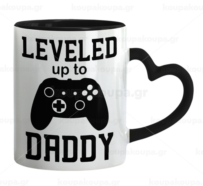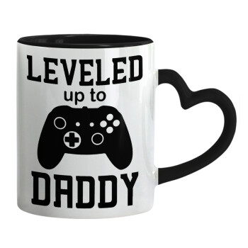 Leveled to Daddy, Mug heart black handle, ceramic, 330ml