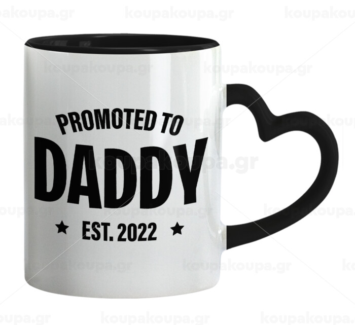 Promoted to Daddy, Mug heart black handle, ceramic, 330ml