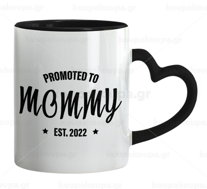 Promoted to Mommy, Mug heart black handle, ceramic, 330ml