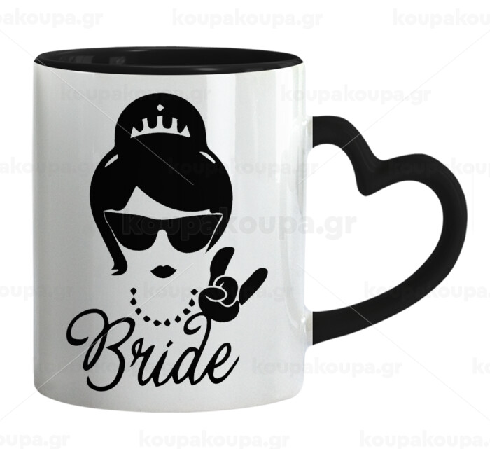 Bride hands, Mug heart black handle, ceramic, 330ml