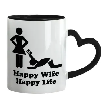 Happy Wife, Happy Life, Mug heart black handle, ceramic, 330ml