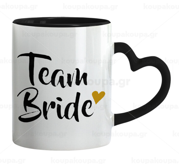 Team Bride, Mug heart black handle, ceramic, 330ml