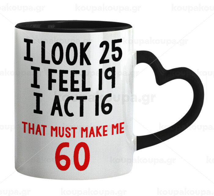 I look, i feel, i act..., Mug heart black handle, ceramic, 330ml