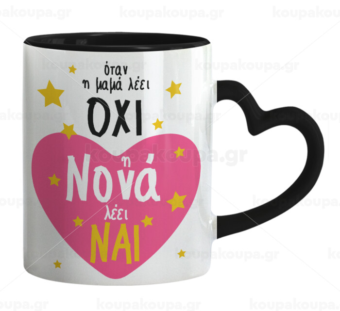 Η νονά λέει ναι!!!, Mug heart black handle, ceramic, 330ml