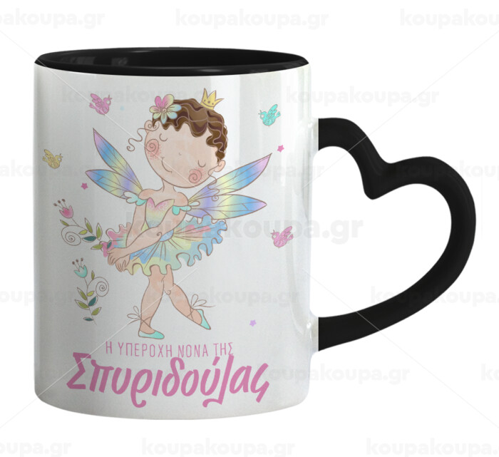 Η νονά μου, Νεράϊδα, Mug heart black handle, ceramic, 330ml
