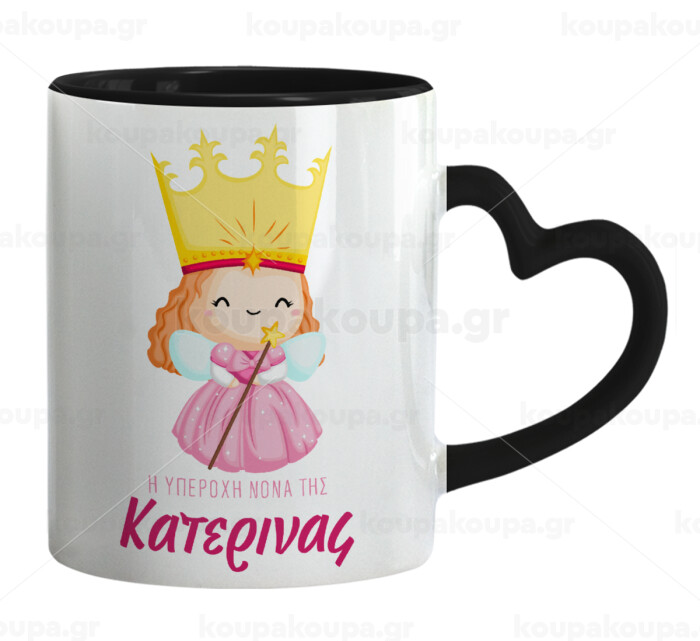 Η νονά μου, πριγκίπισσα, Mug heart black handle, ceramic, 330ml