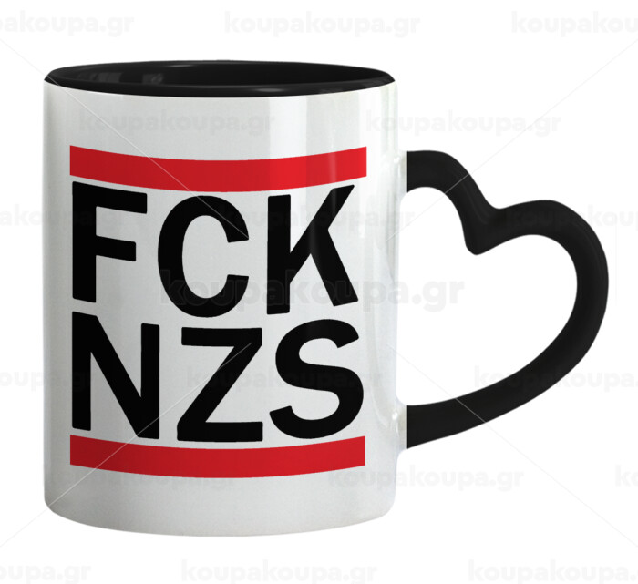 FCK NZS, Mug heart black handle, ceramic, 330ml