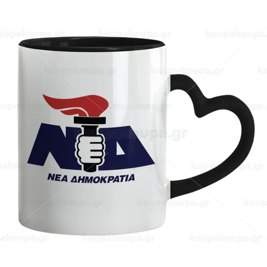 Νέα δημοκρατία κλασική, Mug heart black handle, ceramic, 330ml