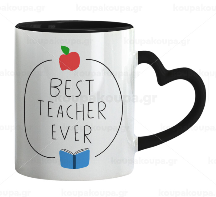 Best teacher ever, Mug heart black handle, ceramic, 330ml